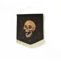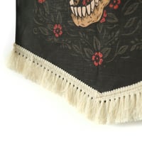 The fabric is hand cut and finished, with sewn edges and cotton tassels along the bottom.